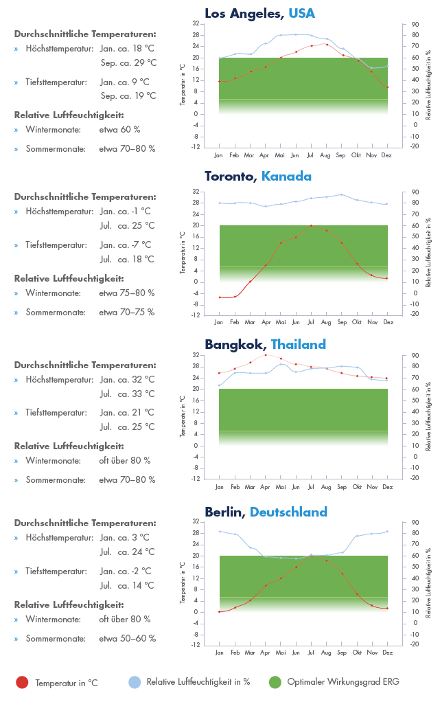 Zudem sind die Strompreise in Nordamerika und Thailand mit 8–11 Cent pro kWh deutlich niedriger als in Deutschland, wo rund 23 Cent/kWh für Industriestrom realistisch sind. All diese Faktoren erklären, warum geschlossene Systeme in diesen Klimazonen trotz höherem Energiebedarf sinnvoll sind – Systeme mit Zu- und Abluft gelten dort eher als Ausnahme.