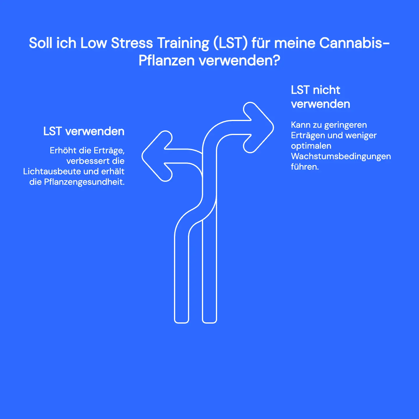 LST kann durch bessere Lichtverteilung die Gesamtproduktion von Cannabinoiden steigern. Studien zeigen 15-25% höhere THC-Werte in LST-Buds verglichen mit Schattenbuds derselben Pflanze. Das Verhältnis der Cannabinoide bleibt dabei stabil.