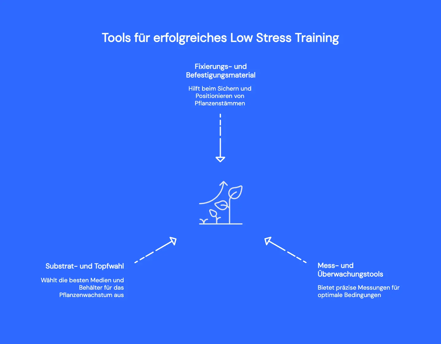Hochwertiges Zubehör ist entscheidend für erfolgreiche LST-Anwendung. Die richtigen Tools reduzieren Pflanzenstress, sparen Zeit und verbessern die Ergebnisse erheblich.